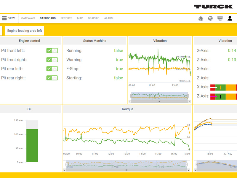 當(dāng)前的機(jī)器數(shù)據(jù)和狀態(tài)顯示在操作面板,例如圖爾克云中。用戶可以執(zhí)行不同的設(shè)置,以及設(shè)置在超出閾值時(shí)通過電子郵件或SMS發(fā)送通知等。該界面可以單獨(dú)調(diào)整,并且可以在需要時(shí)采用客戶自己的設(shè)計(jì)風(fēng)格。